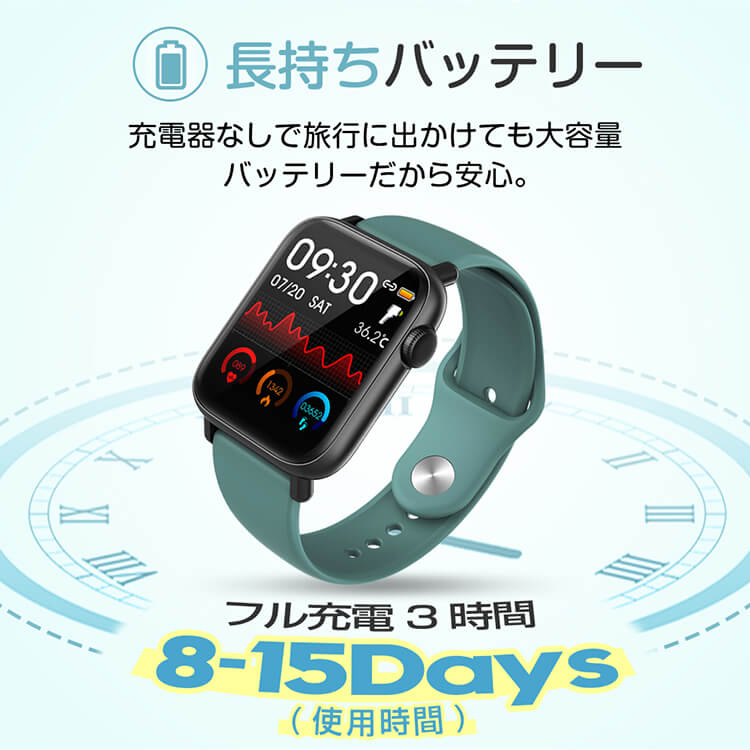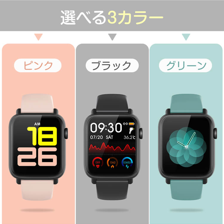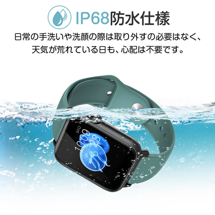 ■本体機能:血中酸素測定、心拍計、活動量計、歩数計、座りがちの自動注意、睡眠、天気予報、SMS通知、電話の着信通知、アラーム、データ同期、データ分析。時計機能はもちろん、iPhoneやAndroidなどスマホとBluetoothで接続すれば、心拍数、走行距離、カロリー消費、睡眠 など日々の様々な活動量の計測が可能です。※汗、雨、水しぶきに対応しています。ただし、デバイスは水泳時またはシャワー時に長く時間で使用することは避けてください。