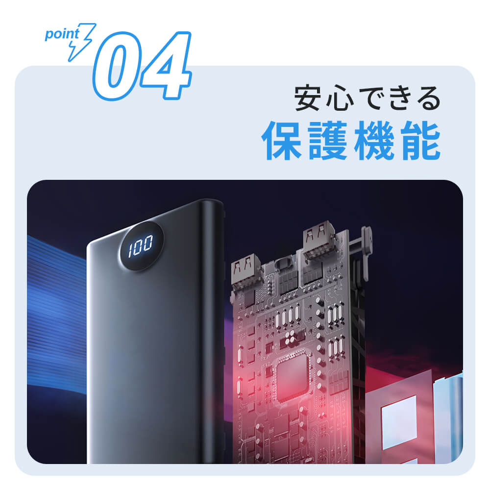 【充電保護&PES認証済】内蔵された多重保護機能により、過充電保護、過放電保護、短絡保護、過熱保護などが備えられており、充電プロセス中に安心して使用することができます。