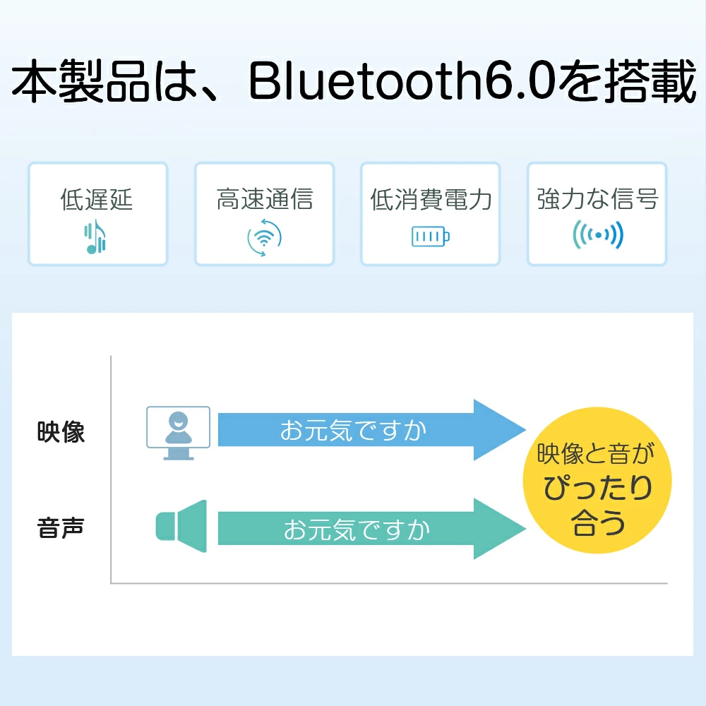 最新Bluetooth6.0を搭載して、接続範囲、安定性やデータ転送速度も大幅に向上し、従来の音飛び、途切れ、通信問題、遅延の状況などを幅広く改善されました。500mAh大容量のバッテリー付き、1回のフルー充電で最大25時間の連続使用が可能です。